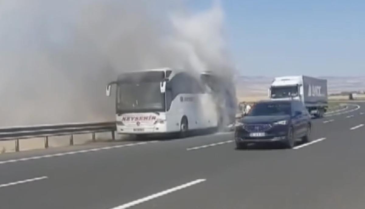 Ankara-Niğde otobanı üzerinde hareket halindeki yolcu otobüsü, henüz bilinmeyen bir nedenden dolayı yanmaya başladı.