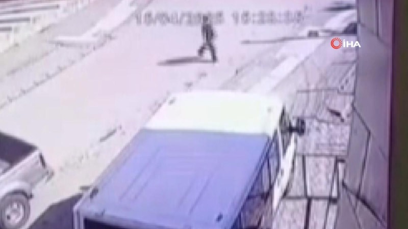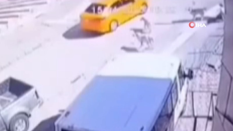 Görüntülerde, panik içinde kaçmaya çalışan çocuğun düştüğü görülüyor.