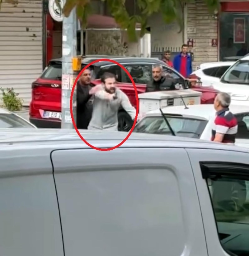 Otopark çıkışını engellediği öne sürülen sürücü araçtan sopayla inerken, diğeri de üzerindeki tabancayı çıkardı.