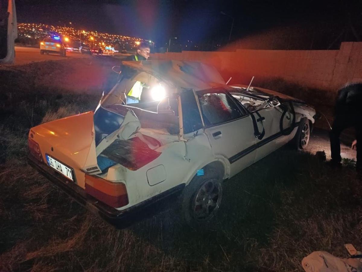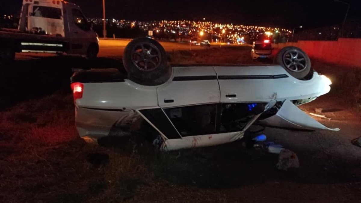 Ters dönen araçta bulunan 4 kişi yaralandı.