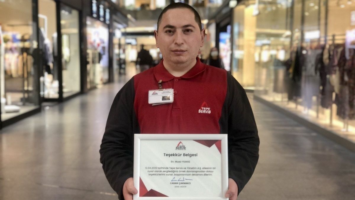 Yılmaz ise alışveriş merkezi yönetimince 'ayın personeli' seçilerek teşekkür belgesine layık görüldü.