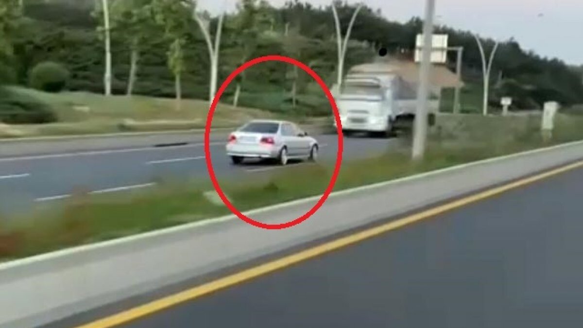 Sürücüsünün ismi ve plakası belirlenemeyen otomobil, bir süre ters yönde yola devam edip, gözden kayboldu.