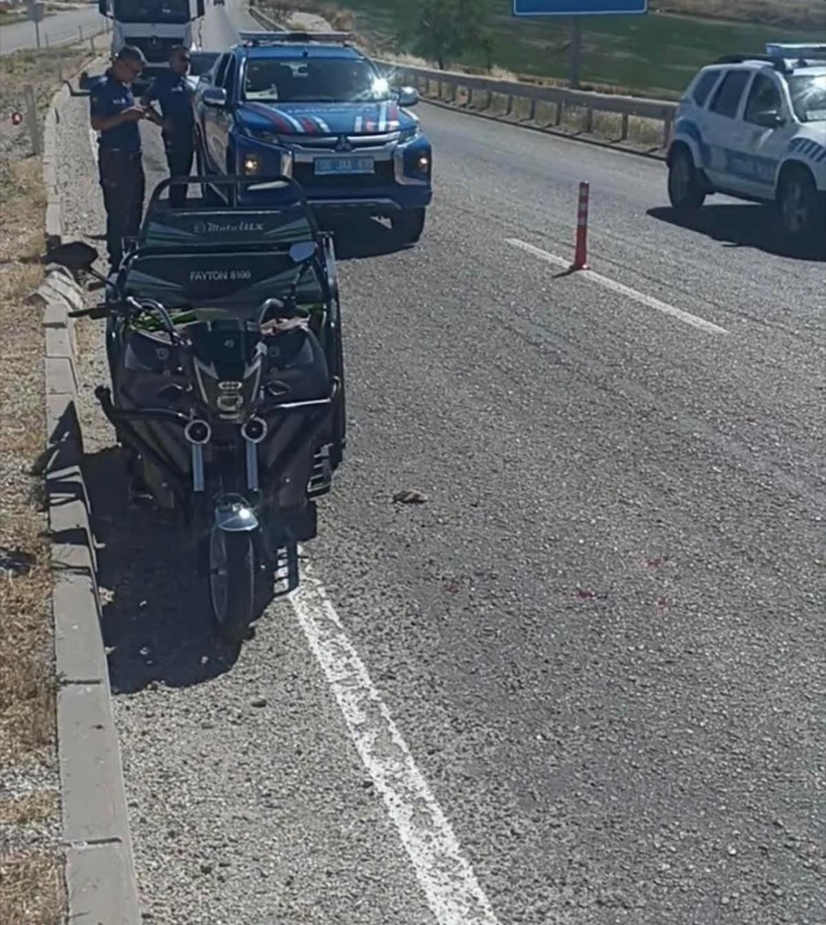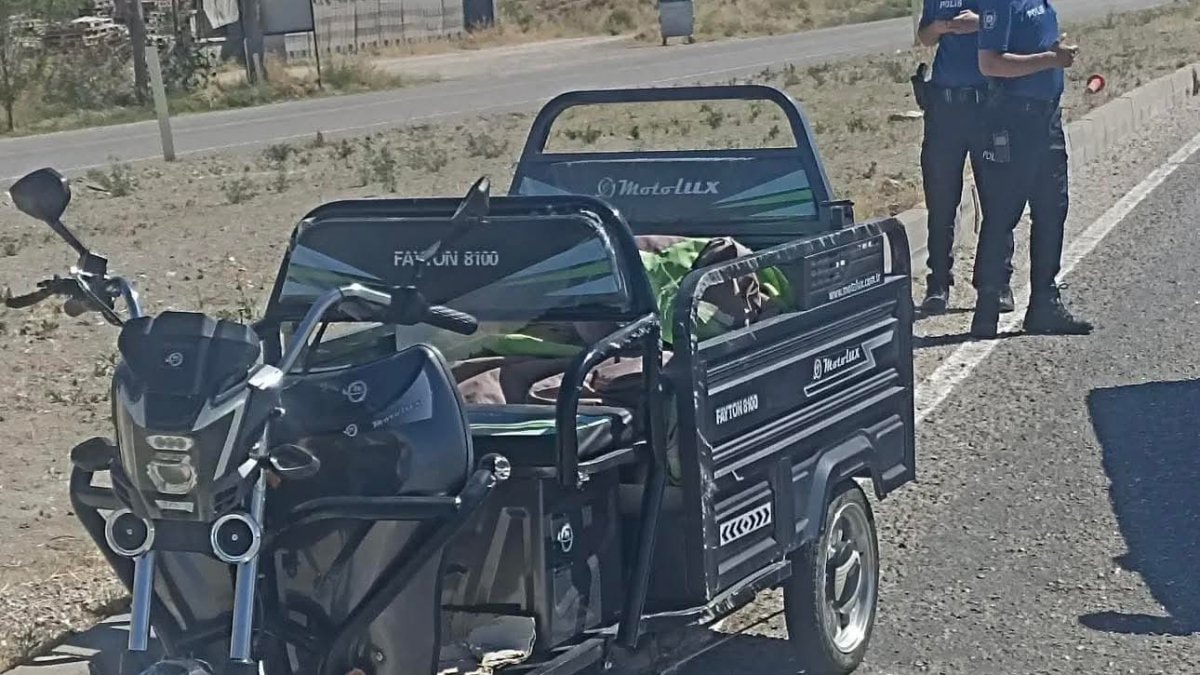 3 tekerli motosiklet, tek şeritli yolda seyrettiği sırada tır tarafından sıkıştırıldı.