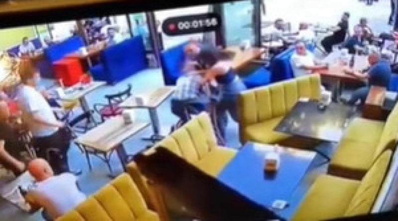 Tokat atan müşteriyi döven kadın garsonu, diğer müşteriler ve görevliler güçlükle ayırdı.