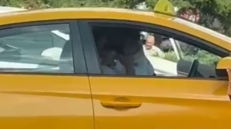 Taksinin camından içeri uzanarak şoföre art arda yumruk atan kişiyi çevredeki diğer sürücüler güçlükle sakinleştirdi.