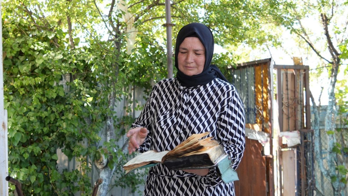 Evimiz yandı, hiçbir şeyimiz kalmadı. Geriye sadece Kur'an-ı Kerim kaldı. Görünce çok duygulandım. Her şey kül olmuştu. Eşim, ‘Kur'an yanmamış' dedi. Açıp baktım, yazıları olduğu gibi duruyordu. Babam, Kur'an'a geçtiğimde bana hediye etmişti. Yıllardır saklıyordum, Rabbim de saklamış. Bu bana Rabbimden bir hediye gibi oldu.
