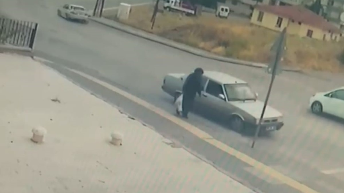 O esnada yoldan geçen yaşlı kadın, savrulan otomobilin altında kalmaktan kıl payı kurtuldu.