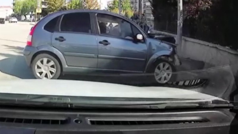 Ankara'nın Sincan ilçesindeki Dr. Emin Acar Anadolu İmam Hatip Okulu önünde bulunan caddede seyreden otomobil sürücüsü direksiyon hakimiyetini kaybetmesi sonucu okulun bahçe duvarına çarparak durabildi.