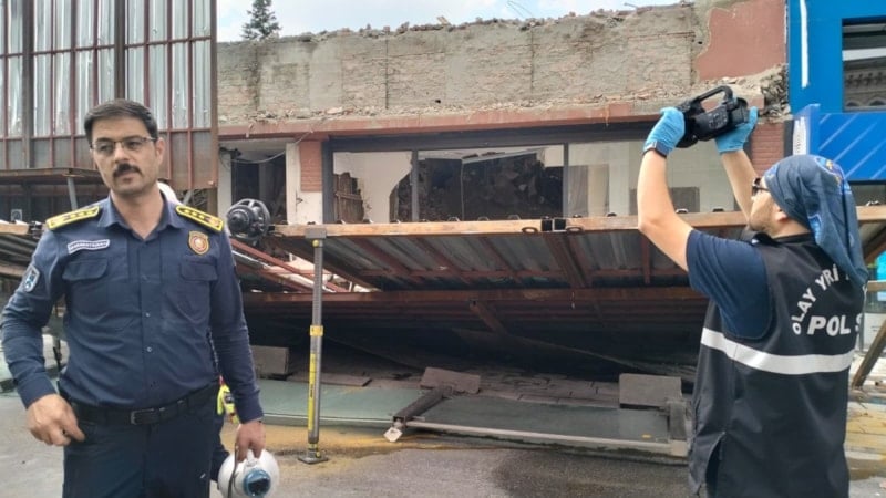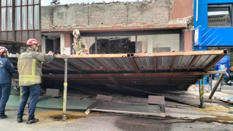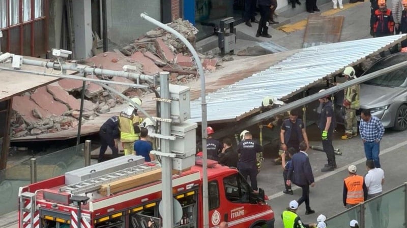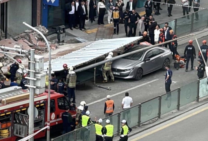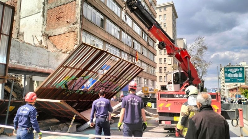 Ankara Altındağ ilçesinde bulunan 4 katlı binanın kontrollü yıkımı sırasında güvenlik amacıyla çevresine çekilen bariyer, caddede yayalar ile park halindeki bir otomobilin üzerine devrildi.