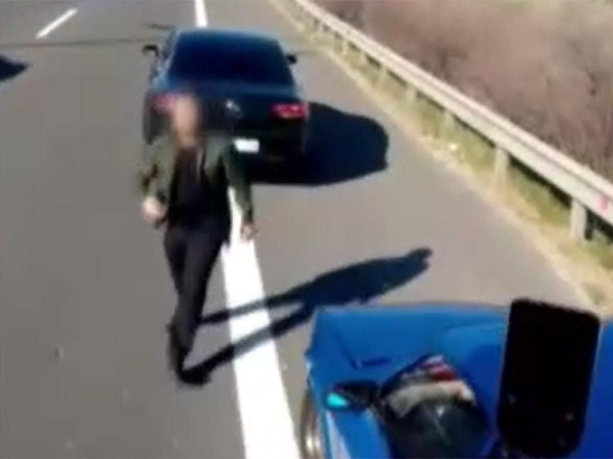 Ankara çevreyolunda bir otomobil sürücüsü yol verme meselesi nedeniyle tartıştığı tır şoförünün önünü kesti.