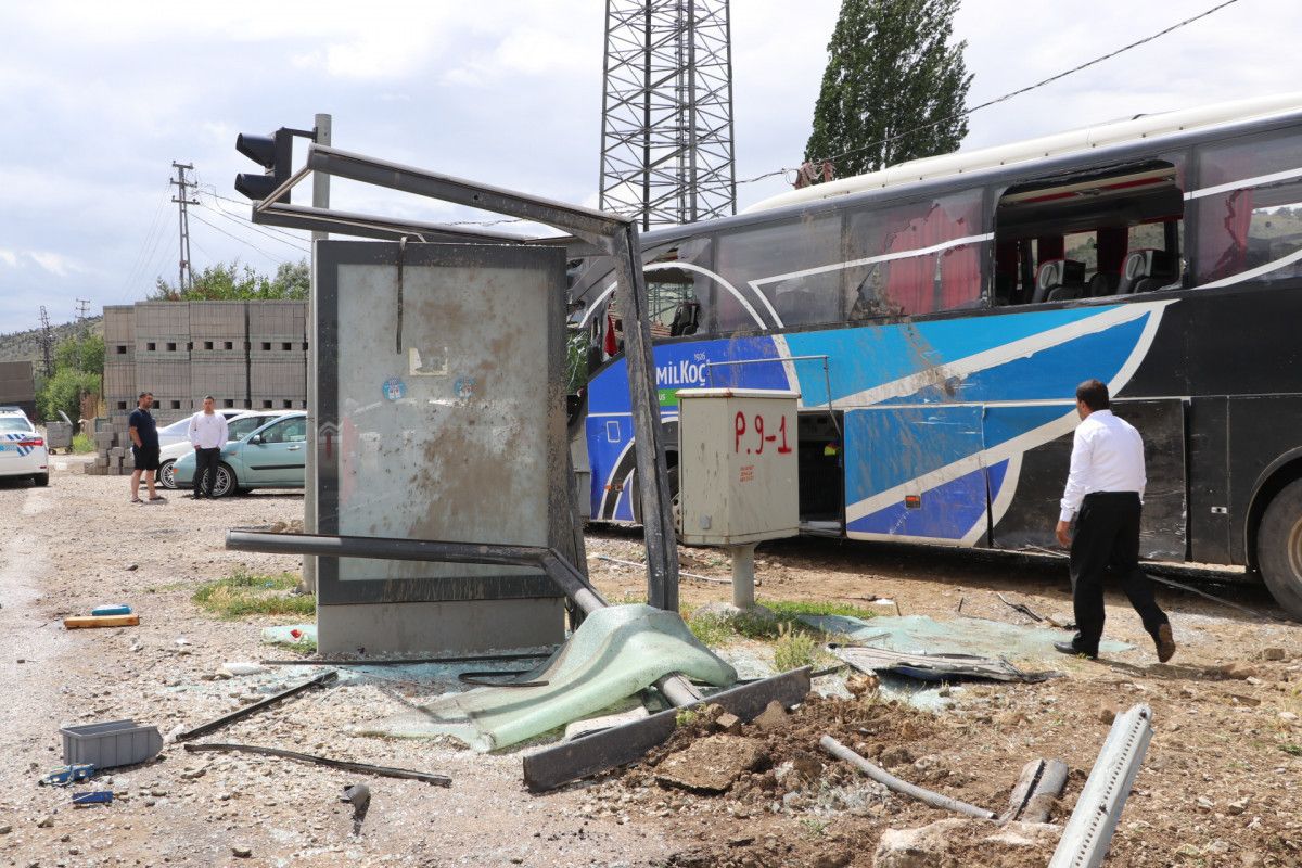 Ankara'nın Mamak ilçesi Gökçeyurt Mahallesi Ankara-Samsun yolunda Çorum'dan Ankara yönüne giden yolcu otobüsü, ışıklı kavşakta plakası belirsiz minibüse, ardından da otobüs durağına çarptı.