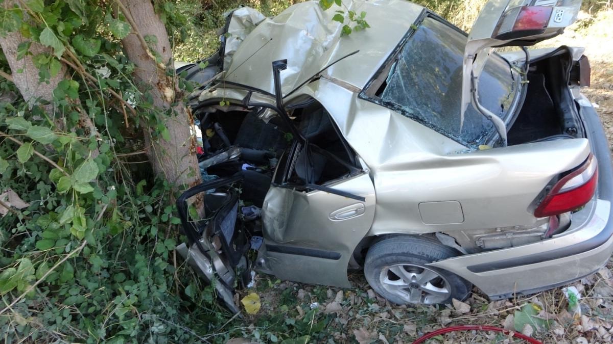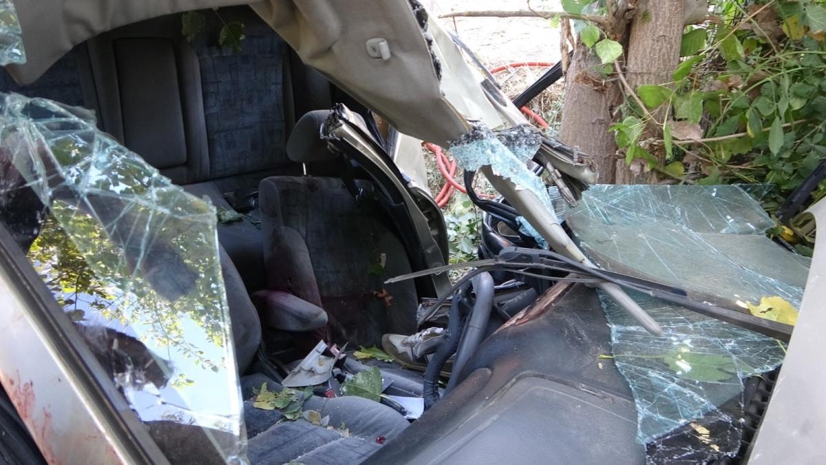 Kontrolden çıkan araç kaldırımı aşıp, yol kenarındaki ağaca çarparak durabildi.