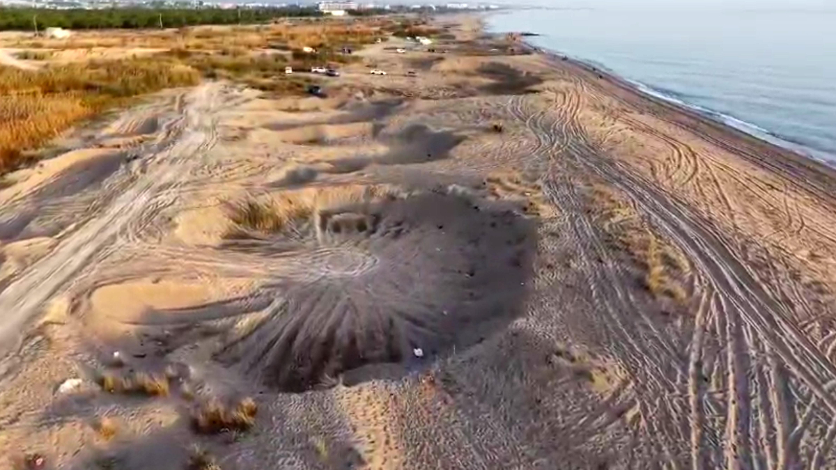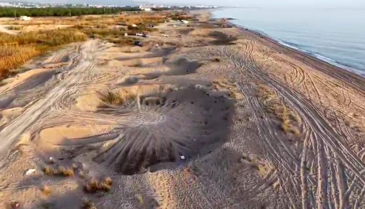 SAHİLDE AÇILAN DEV ÇUKURLAR GÖRÜNTÜLENDİ