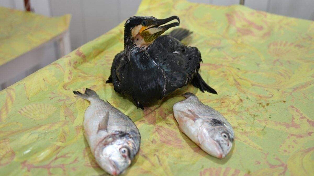 Veterinerlerin yaklaşık 30 dakika süren müdahalesi sonucu karabatağın yutmaya çalıştığı iki çupra çıkarıldı.