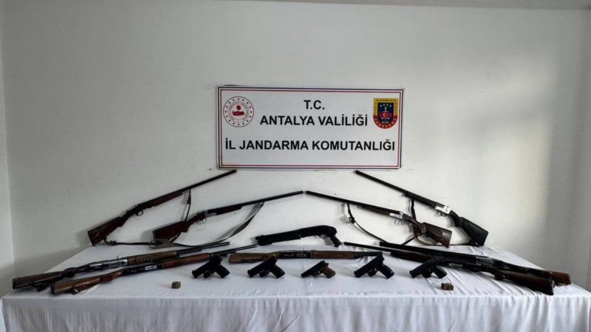 - Antalya'da jandarma, Alanya ilçesinde 5 adrese eş zamanlı yapılan aramalarda 15 ruhsatsız silah ele geçirdi.
