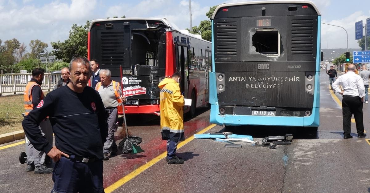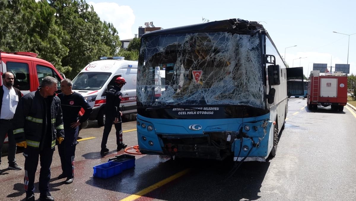 Antalya'nın Kepez ilçesi Fabrikalar Mahallesi Namık Kemal Bulvarı’nda Nazmi Karabıyık idaresindeki halk otobüsü, trafik ışıklarında bekleyen önündeki halk otobüslerine çarptı.