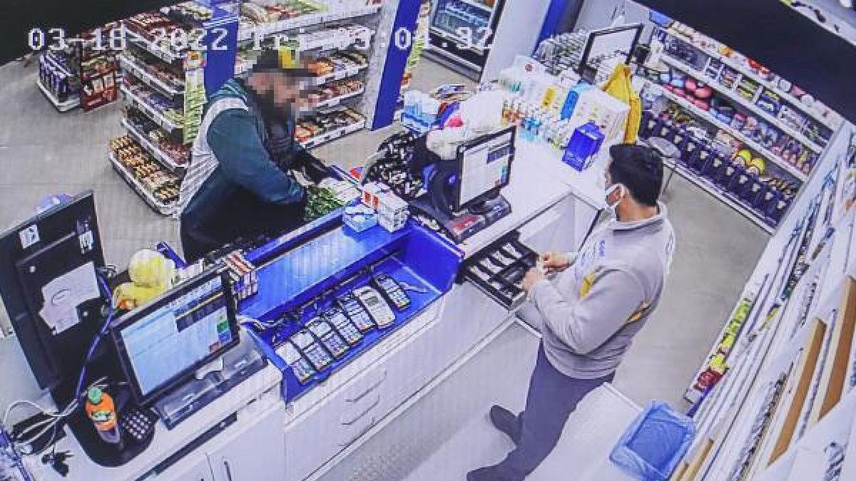 Akaryakıt istasyonunun gece vardiyası çalışanı Mehmet Eraslan (26), "Geç vakitte 2 kişi markete geldi. Ben 1'iyle ilgilenirken diğeri de elektronik raf tarafına geçti. Bir ara tuvalete gitti, geri geldi. Sonra şarj kablosu satın aldı ve marketten ayrıldı. Boş kutu tuvaletten çıkınca kamera görüntülerini izledik. Rafta asılı cihazı kutusuyla birlikte alıp tuvalete yöneldiğini gördük. Sayım sonrasında da ürünün çalındığını fark ettik" diye konuştu.