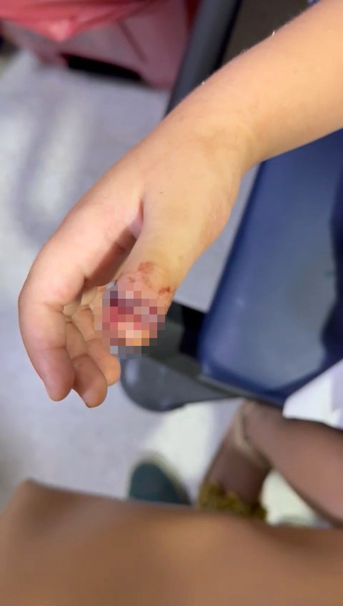 Okul yönetimi tarafından aranıp durumun kendisine söylendiğini belirten Dicle Taktak ise "Saat 09.00 sıralarında okula bıraktım. 10.30 sıralarında da telefon geldi. 'Mavi bir parmağını kapıya sıkıştırdı. Okula gelebilir misiniz?' dediler. 'Hemen geliyorum' dememe rağmen 5 dakika sonra 'Ambulansla hastaneye geçiyoruz' dediler. Hastanede doktor parmağını açana kadar 'Parmağını kapıya sıkıştırdı, 2 dikiş atılacak' şeklinde düşünüyorduk. O esnada anladık parmağın koptuğunu" dedi.