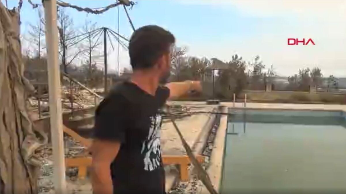 “Arabayla buraya kadar geldim. Arkamdan çok kuvvetli bir şekilde yangın geliyordu. Kendimiz havuza attık. Üstümüzde alevler vardı. Çocukları havuza batıra çıkara hayatta kaldık. Son anda hayatımızı kurtardık. Bu havuz olmasaydı hepimiz ölüyorduk. Köyümüzde sağlam 5 ev kalmış sadece.