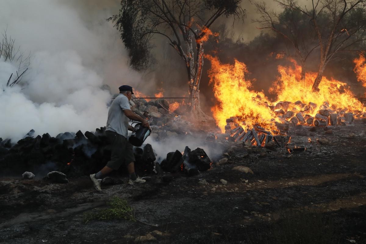 Alevlerin arasında kalan bir kirpi çevredekiler tarafından yanmaktan kurtarılırken, bazı vatandaşlar da evcil hayvanlarını bölgeden uzaklaştırmaya çalıştı.