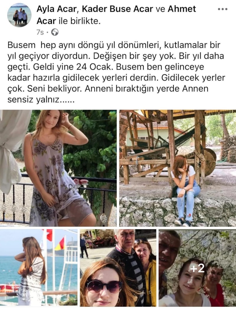 24 Ocak tarihinin, hem aile hem de yakın çevresi için derin bir yara olarak kaldığını ifade eden Ayla Acar, sosyal medya paylaşımlarıyla kızına olan özlemini dile getiriyor.