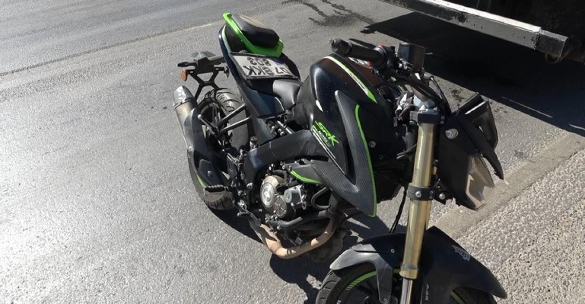 Çarpmanın şiddetiyle motosikletten düşen genç, park halinde bulunan tırın altına girdi.