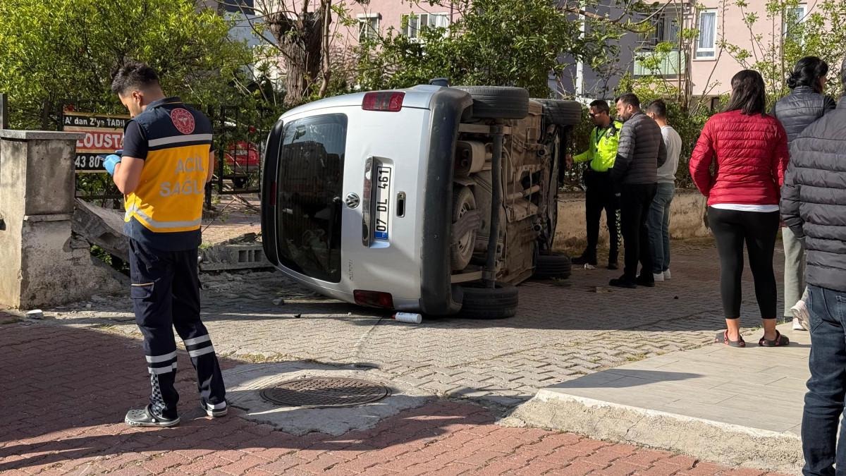 Antalya'nın Muratpaşa ilçesinde seyreden hafif ticari araç sürücüsü Y.Ö., sabah saatlerinde Sinanoğlu Caddesi'nde direksiyon hakimiyetini kaybetti.