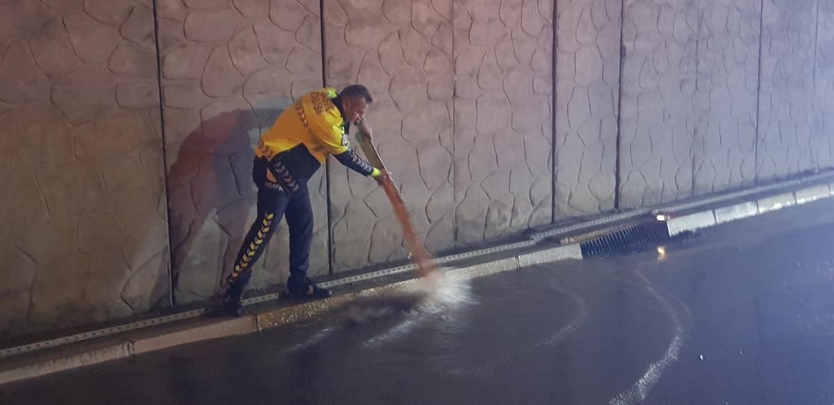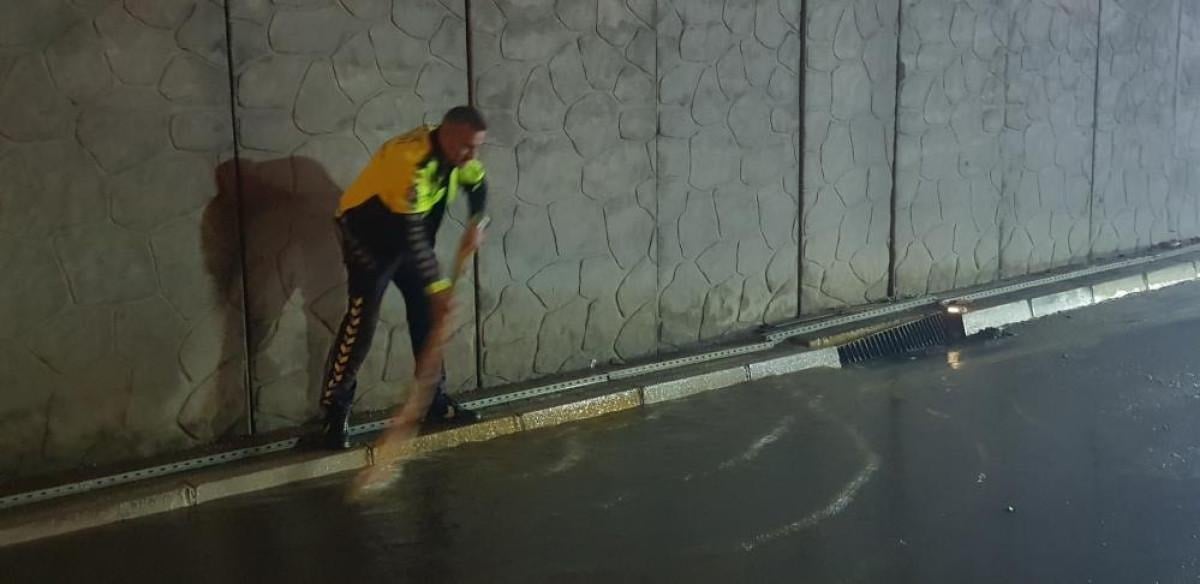Alt geçitte biriken su 1 saat içinde boşaltılırken, ekipler biriken çamuru süpürgelerle temizledi. Temizliğin ardından yol saat 06.00 sıralarında trafiğe açıldı.