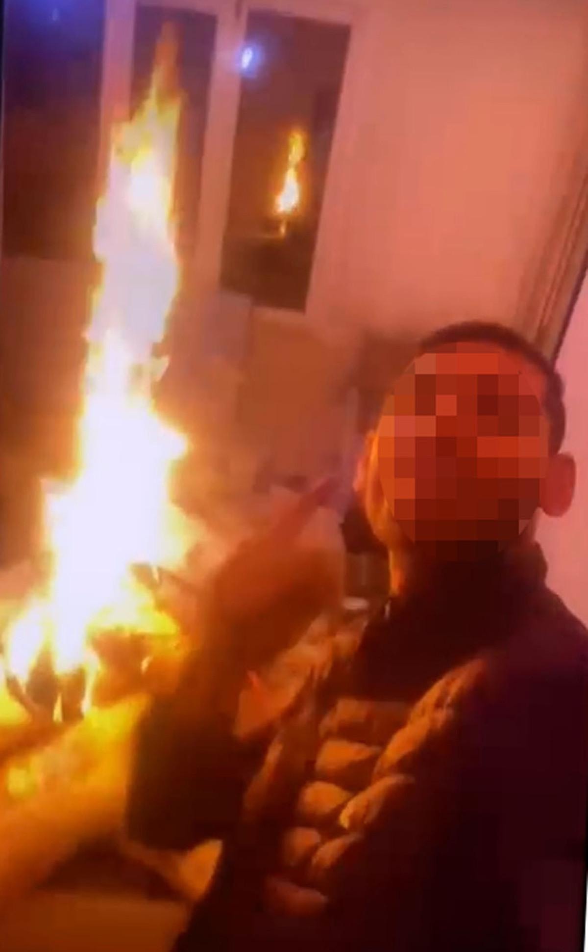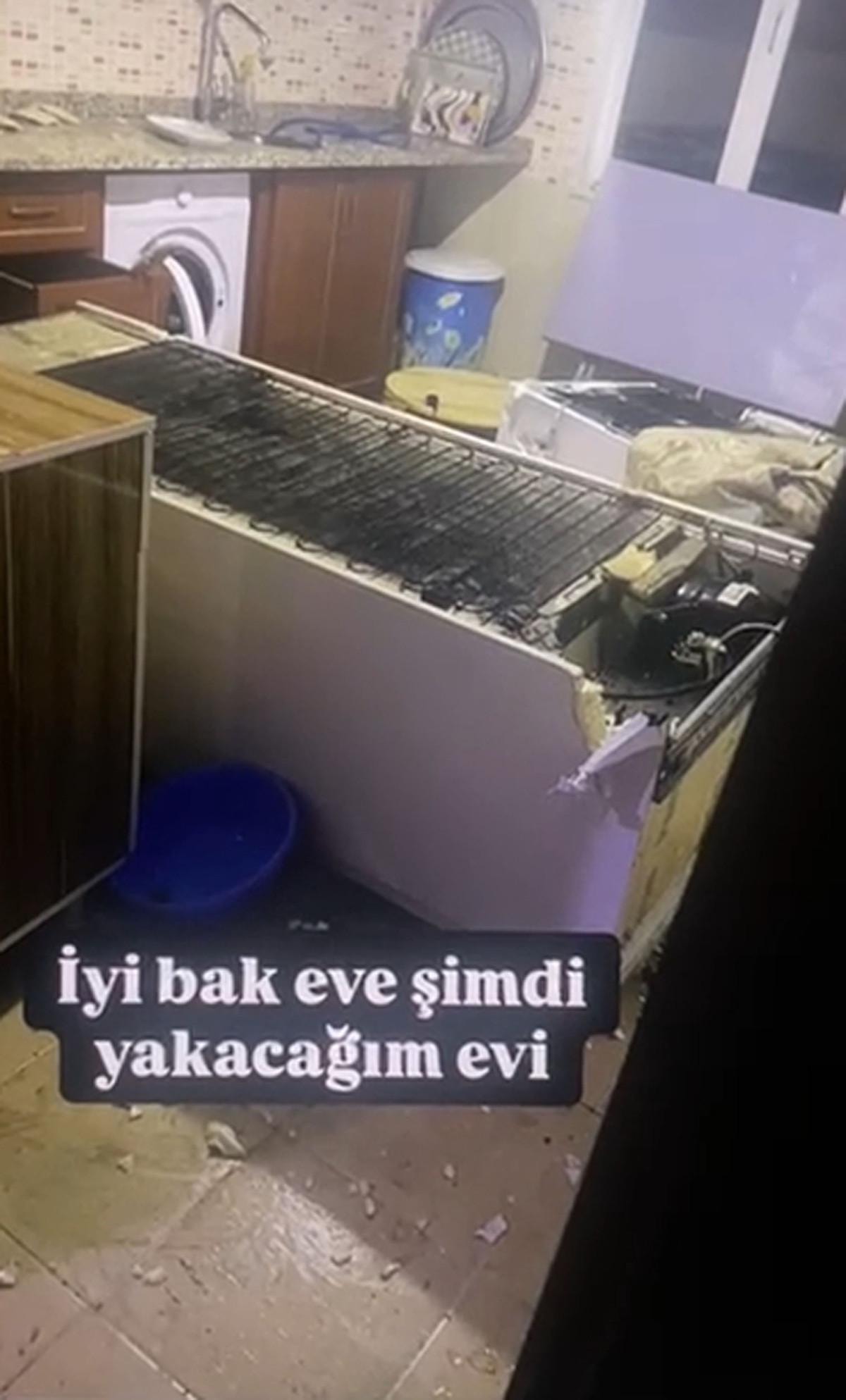 'Hadi polis çağır' ve 'İyi bak eve şimdi yakacağım' notlarıyla evi dağıttığı fotoğrafları paylaşan S.Ö.'nün, "Evi yakacağım. Gördün mü evi? Bir tane eşya koymayacağım bu evde" dedikten sonra eşyaları ateşe verdiği, sonra da "Vallahi çatır çatır da yanıyor" dediği duyuldu.