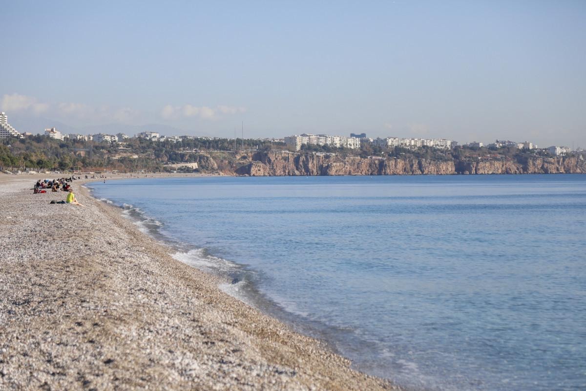 Sıcak havayı fırsat bilen Antalyalılar ile yabancı turistler, Konyaaltı Sahili'ne geldi.