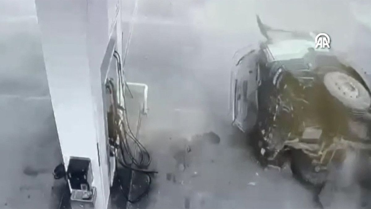 Öte yandan kaza anı bir iş yerinin güvenlik kamerasınca kaydedildi.