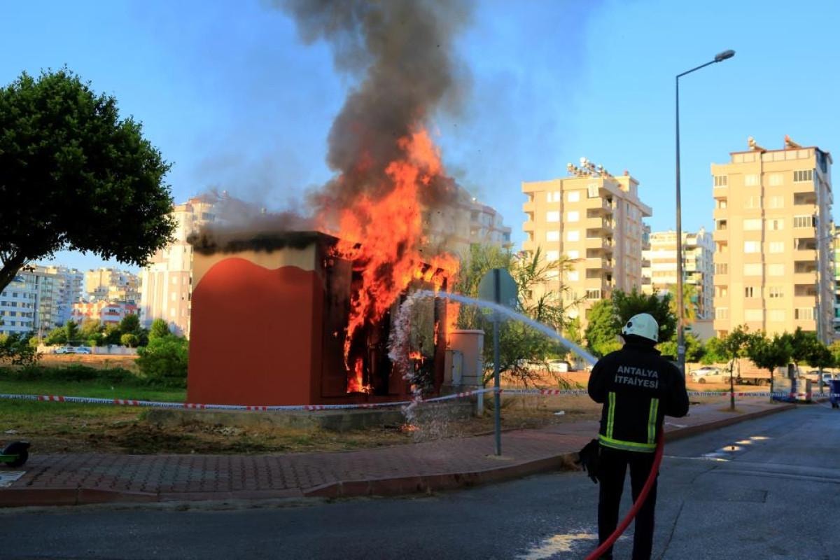 Konyaaltı ilçesi Uncalı Mahallesi'ndeki bir parkta bulunan ve mahalleye enerji sağlayan elektrik trafosunda aşırı yüklenmeye bağlı olarak önce dumanlar yükseldi, sonra patlamalar yaşandı ve alevler yükseldi.