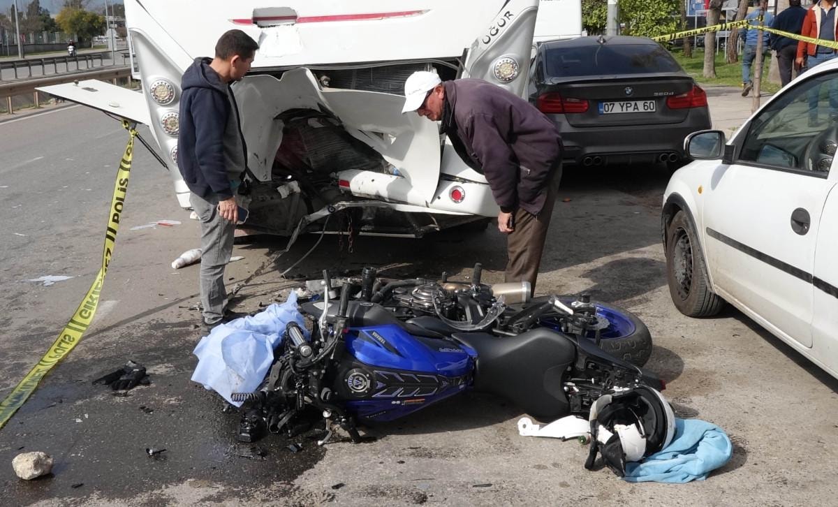 Antalya'nın Kepez ilçesi Kepez Mahallesi Hurdacılar Caddesi'nde Mustafa Yaldız yönetimindeki motosiklet, park halindeki servis aracına çarptı.