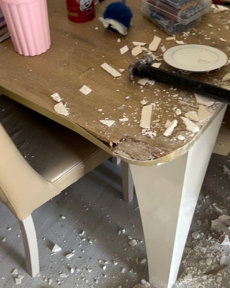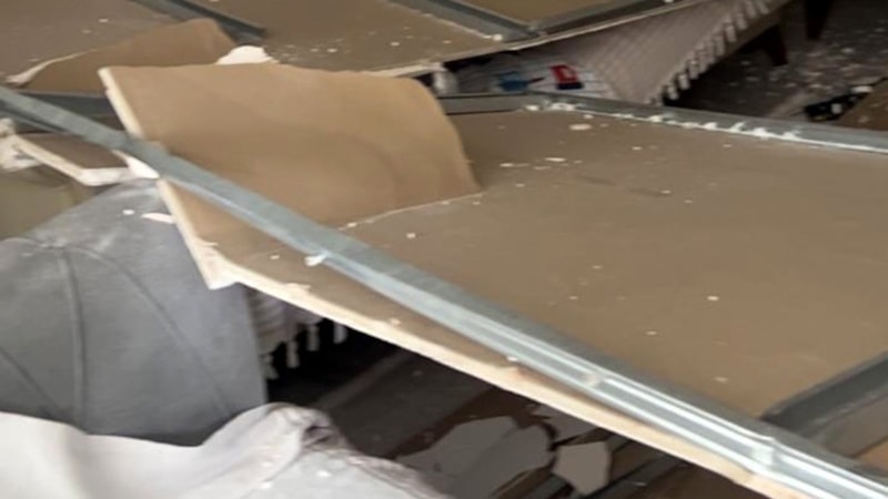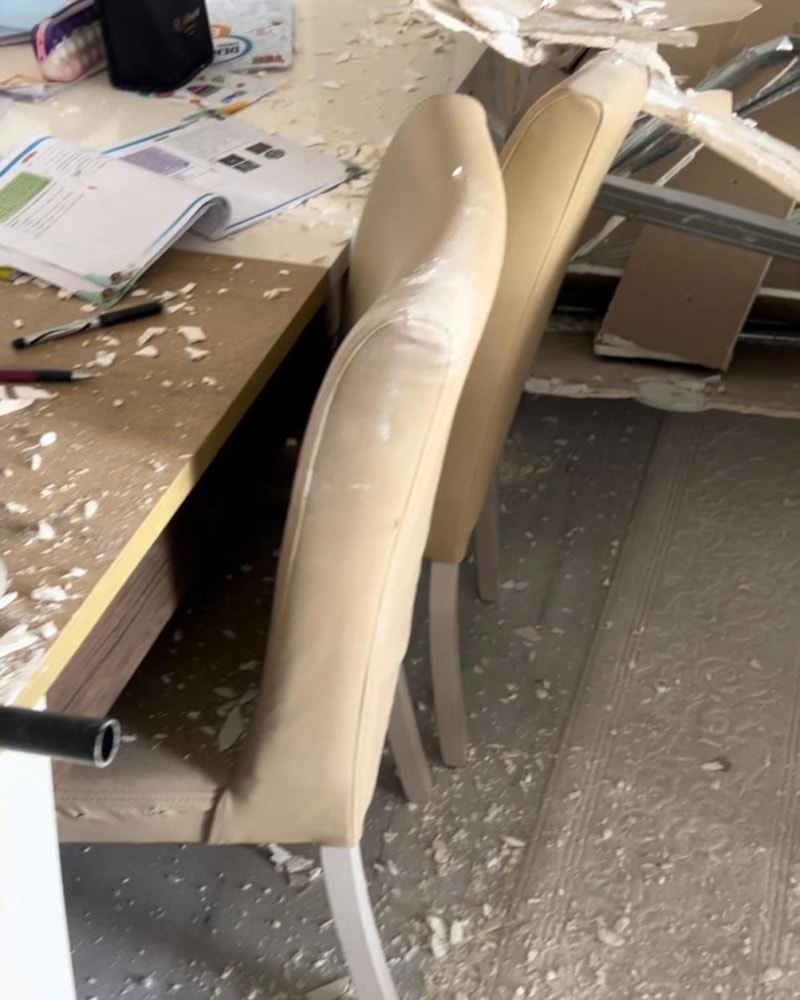 Olay sonrası tavanda ve salondaki eşyalarda hasar oluştu.