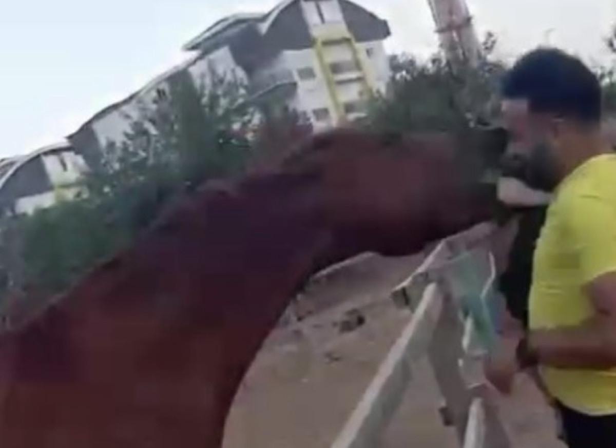 Bu sırada hatıra olması amacıyla oğlunun atı beslediği anları Kassum'un eşi cep telefonu ile kayda almaya başladı.