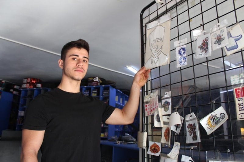 Dükkana yabancı uyruklu müşterimiz geldi. Önce ürünleri inceledi, sonra etrafa baktım. Bizden su istedi. Daha sonra sattığımız etiketlere bakarak, Atatürk etiketine müdahalede bulundu. Ne yaptığını sorduğumda etiketi yere attı, ağzındaki suyu yere döktü. Alaycı tavırlarla yaklaştı. Atatürk etiketini de ayağıyla ezdi. O an çok öfkelendim, dayanamadım ve masanın üzerinden atlayarak müdahale ettim. O an hiçbir şey düşünmedim ve müdahalede bulundum. Sonra kaçmaya başladı, yeniden yakaladım. Ardından bizi çevredekiler ayırdı.