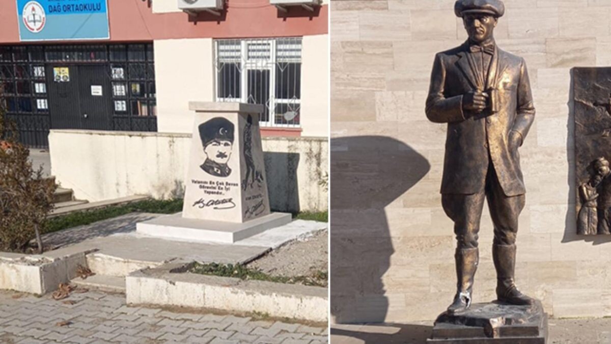 Şüpheli, buradaki Atatürk büstünü de zorlayarak yerinden söktü ve yere attı. Mahalleli heykele ve büste zarar verildiğini görünce durumu jandarmaya bildirdi.