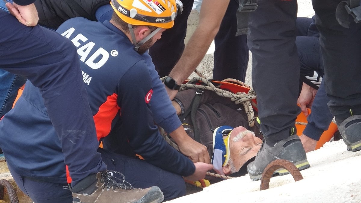 Ekipler, kayalıklara sıkışan Toprak'ı halat, sedye ve merdiven yardımıyla yaklaşık 1 saat süren çalışmanın ardından sıkıştığı yerden çıkarıp, sağlık ekiplerine teslim etti.