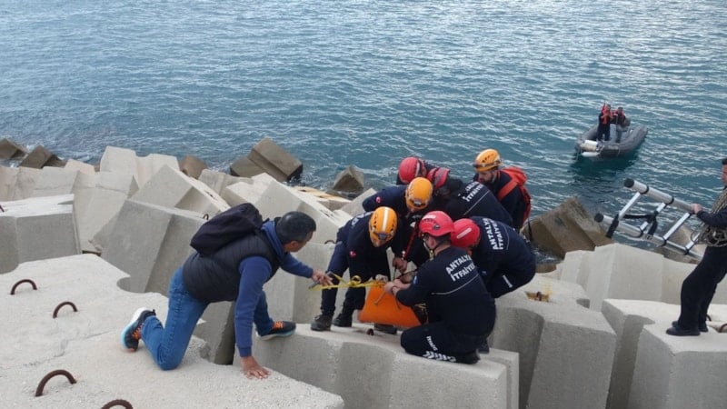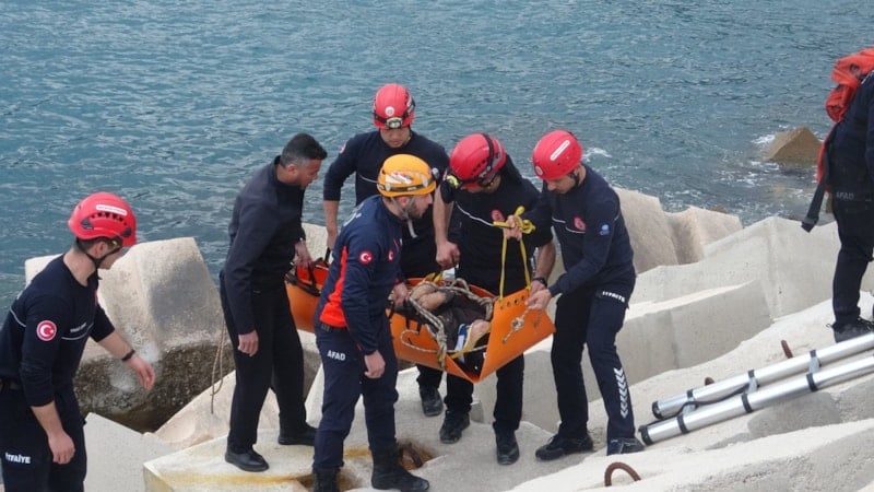 Antalya'da balık tutmak için gittiği mendirekte ayağı kayarak beton blokların üzerinden düşen yaşlı adamın imdadına ekipler yetişti.