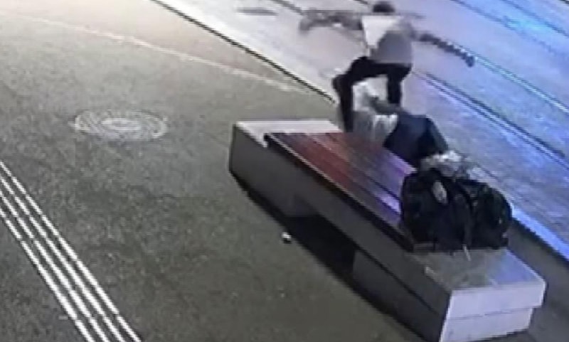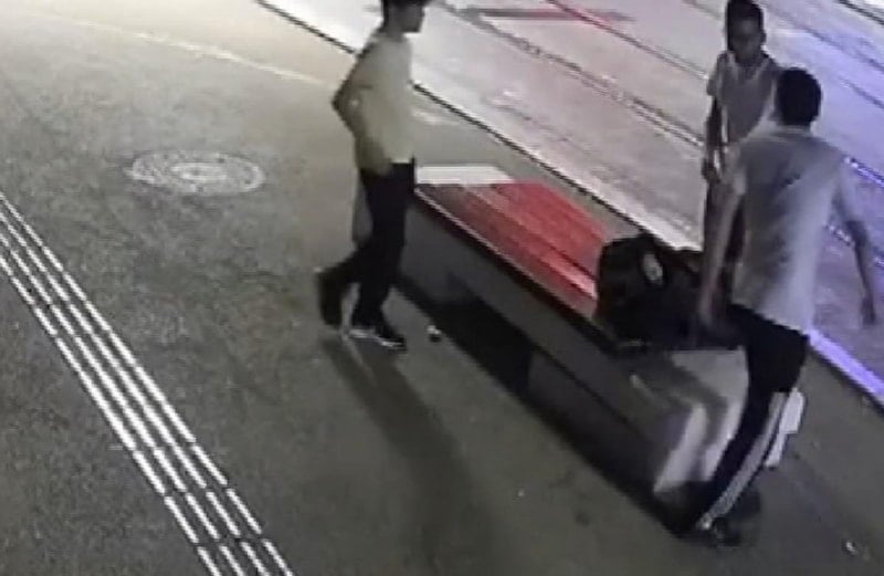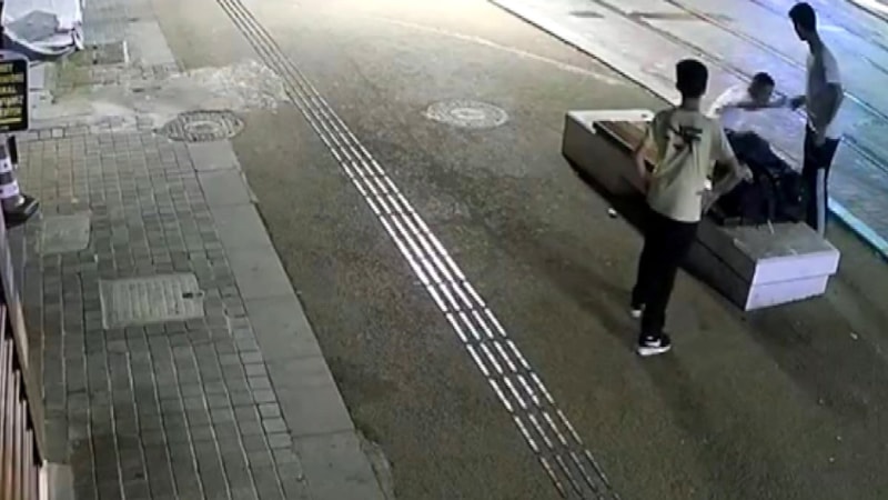 Bir iş yerinin güvenlik kamerasına yansıyan görüntülerde, Ali T.'nin sırt çantası ve valiziyle bankta oturan Ertuğrul D.'nin yanına geldiği, sigara istediği görüldü.