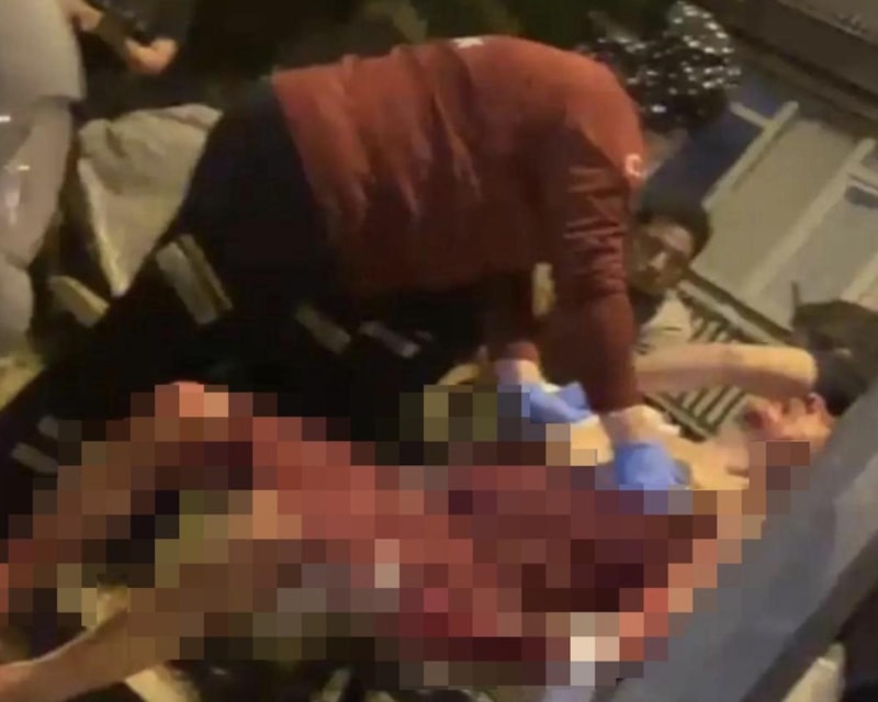 Kanlar içinde apartman koridoruna çıkan Tilif, yardım çığlıkları attı.