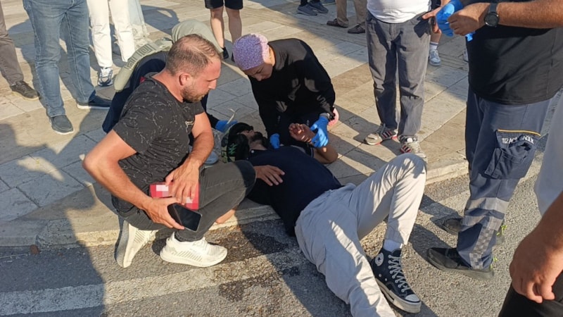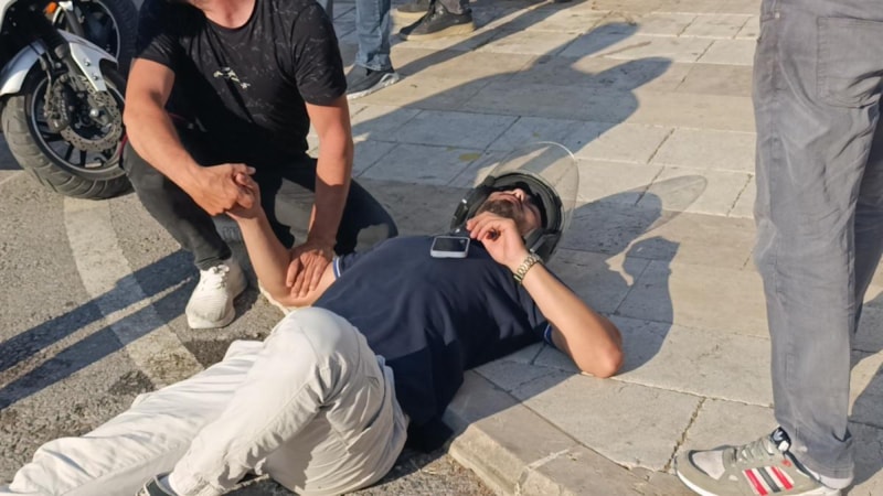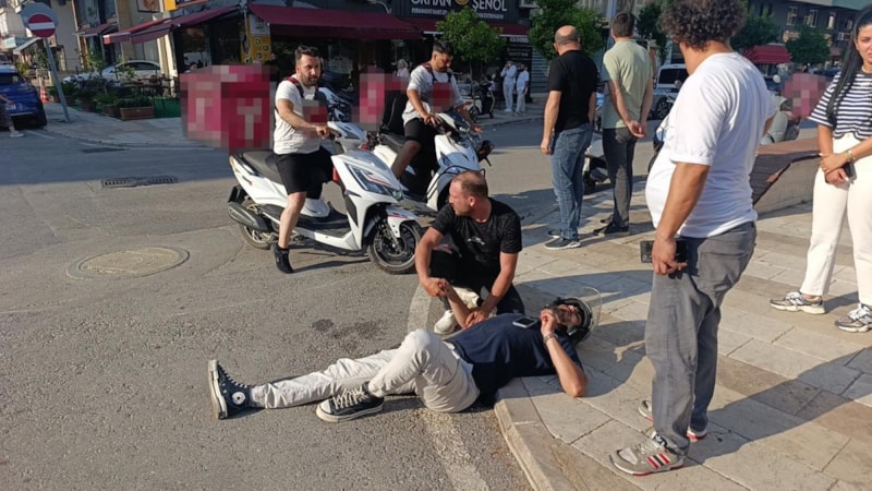 Güvenlik kamerası görüntülerine yansıyan kazada, çarpmanın etkisiyle yere savrulan motosiklet sürücüsü başını kaldırıma çarptı. Ancak taktığı kask sayesinde daha ağır bir yaralanmadan kurtuldu. İlk yardıma çevredeki esnaf koşarken, olay yerine çağrılan 112 Acil Sağlık ekipleri sürücüye müdahale etti. Yaralı, ambulansla hastaneye kaldırıldı.