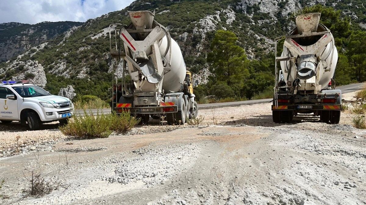 Antalya’nın Kumluca ilçesinde, Mavikent ile Adrasan bölgelerinde orman yangınlarıyla mücadele ve çevrenin korunması için çalışma yapan İl Jandarma Komutanlığı Çevre Doğa ve Hayvan Koruma Tim Komutanlığı ekipleri, Mavikent-Karaöz-Adrasan yolu kenarında 2 beton mikseri fark etti.