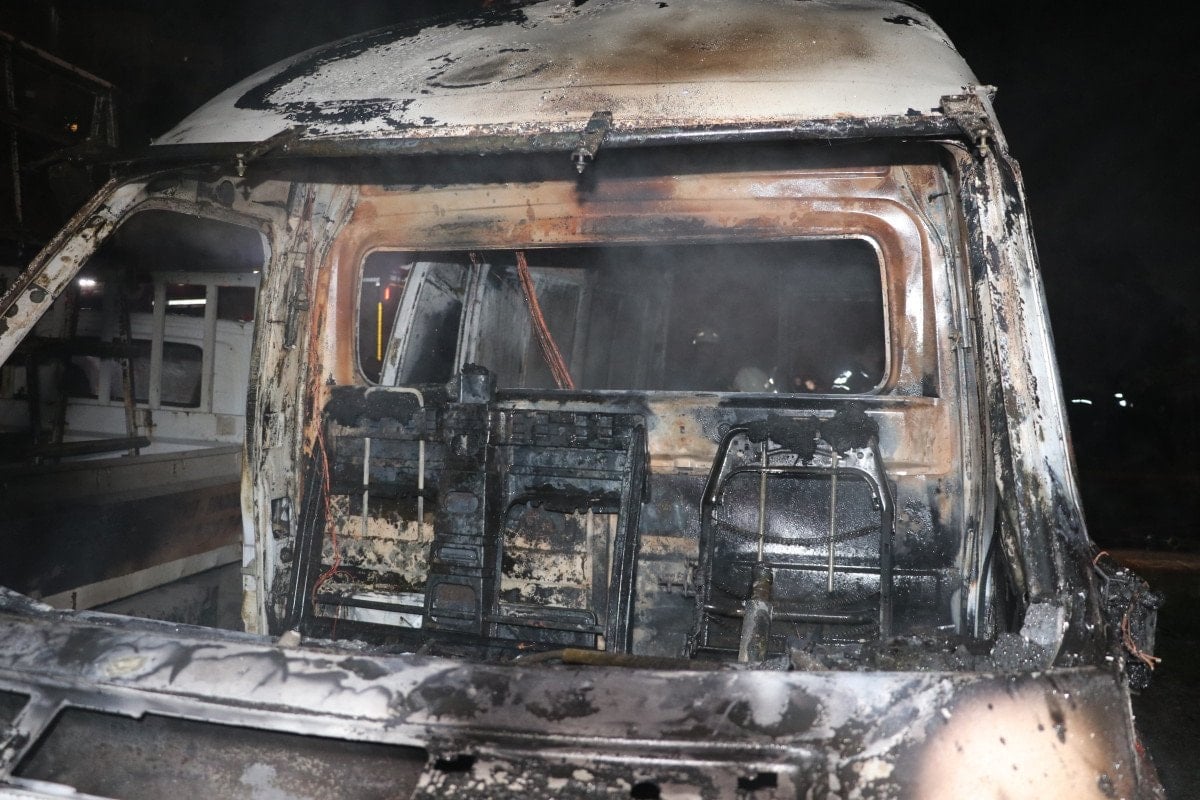 İtfaiye ekiplerinin müdahalesiyle yangın kontrol altına alınarak söndürüldü. Kundaklanan her iki araç da yanarak küle döndü.