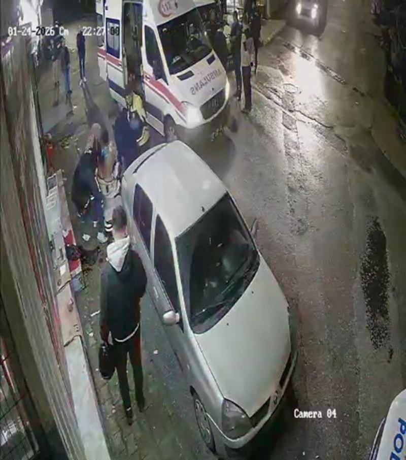 Görüntülerde, ayrıca kavga seslerini duyan mahalle sakinlerinin iki arkadaşı ayırması ve ardından polis ve sağlık ekiplerinin yaralılara müdahalesi yer aldı.
