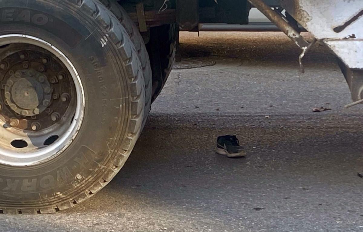 Görüntülerde küçük çocuğun bisikletini sürdüğü sırada dengesini kaybedip düşmesi ve kamyonun altında kalma anları yer aldı.