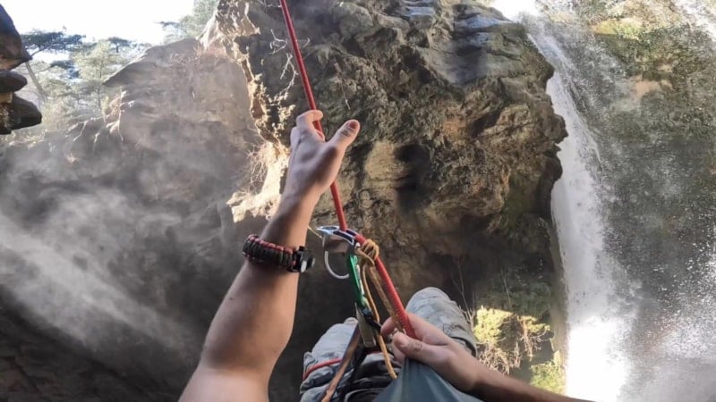 Elleri kesilen ve 20 metre boşluğa düşen Kuşçu, beline bağladığı ipin düğümünün bir yere takılmasıyla uçurumun dibine düşmekten kurtuldu. Arkadaşının ihbarıyla olay yerine gelen kurtarma ekibi, yaklaşık 2 saatlik uğraşla Kuşçu'yu bulunduğu yerden alıp kurtardı. Kuşçu'nun vücudundaki kamera sayesinde yaşananlar anbean kaydedildi.