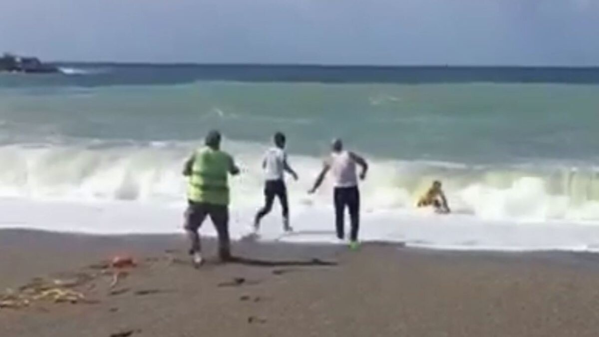 Boğulma tehlikesi geçiren kişi ve cankurtaran dalgaların arasından kıyıya çekildi. O anları cep telefonuyla kaydeden bir vatandaş da "Allah’ın izniyle kurtuldu inşallah” dedikten sonra kaydı durdurarak yardıma koştu.