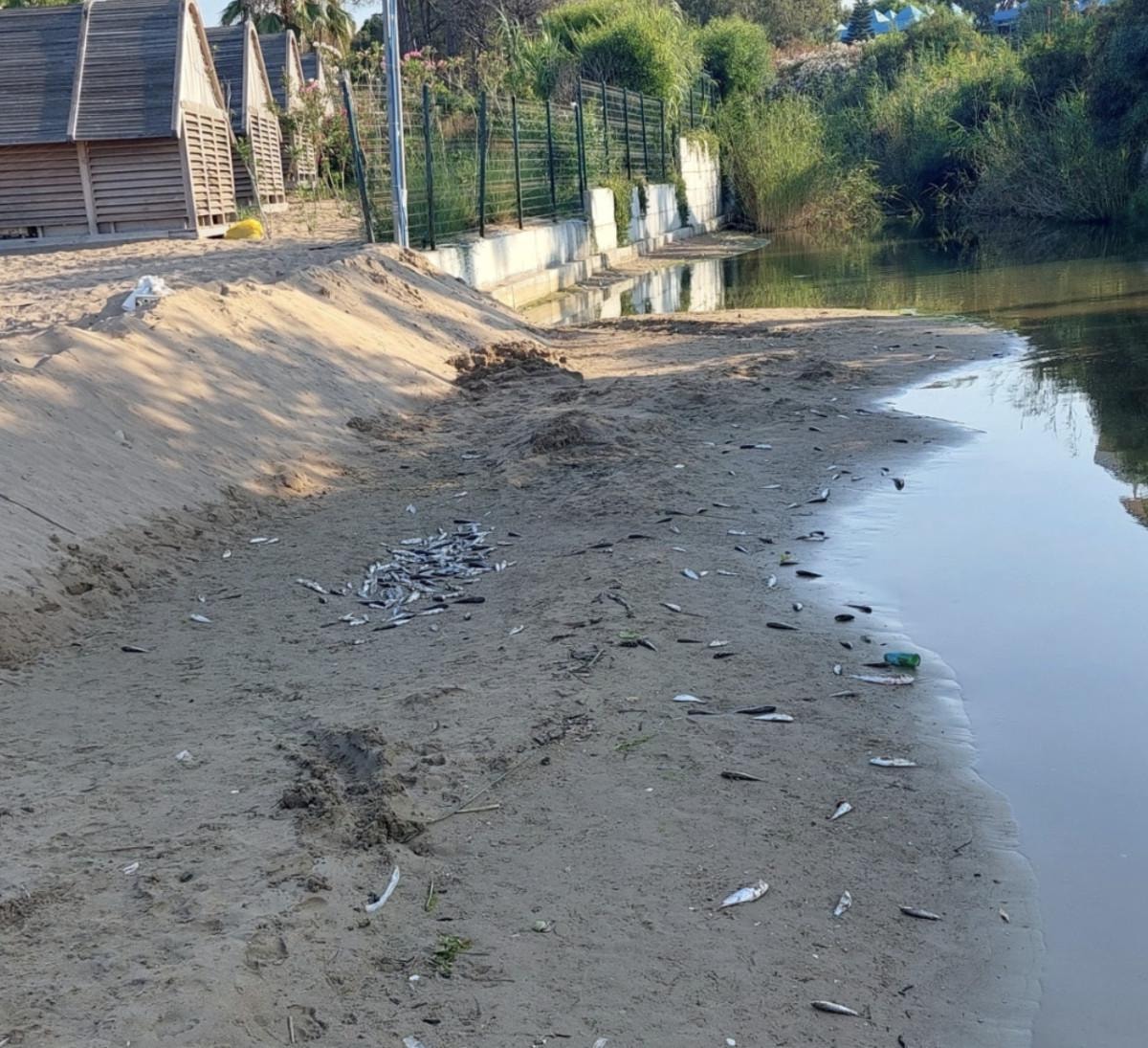 Antalya'nın Manavgat'ın dünyaca ünlü tatil merkezi olan Side'de, 5 yıldızlı iki otelin arasından geçerek denize dökülen su kanalında yüzlerce ölü balık kıyıya vurdu.