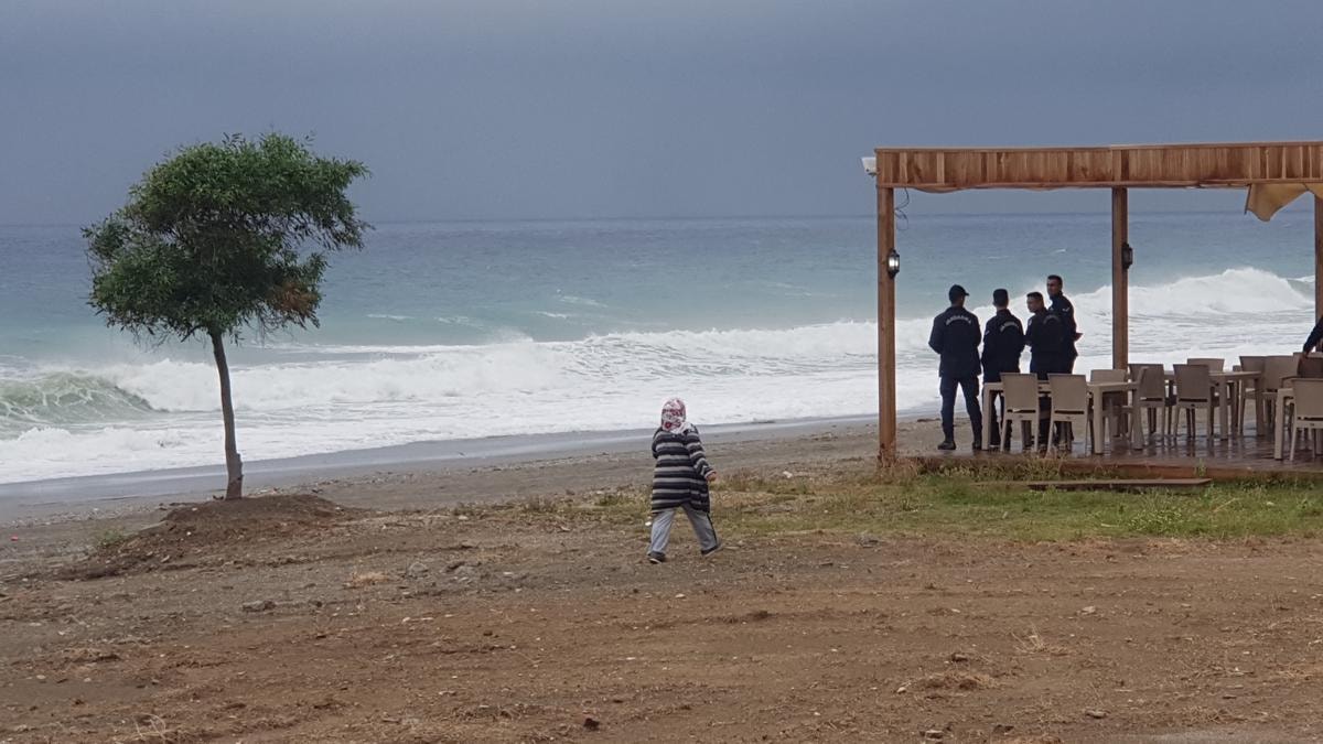 Acılı akrabalar genci bulmak için dev dalgalara rağmen denize girmek isteyince jandarma zor anlar yaşadı.